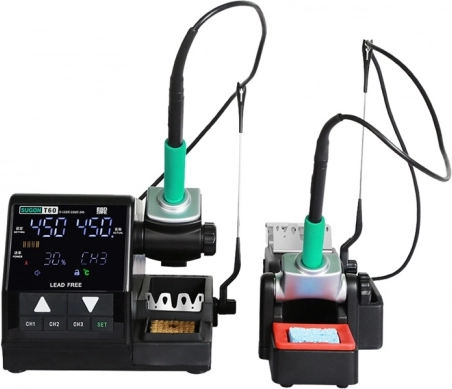 Sugon T60 este o stație de lipit digitală performantă pentru profesioniști și utilizatori hobby exigenți. Datorită extensiei TJ8 puteți lucra cu până la două mânere simultan, comuta canalele și menține productivitate ridicată fără timpi morți inutili. Compatibilitatea largă cu mânerele T115, T210 și T245 (cu încălzitoare din seria C470) acoperă lipirea fină SMD și lucrul pe îmbinări masive.
