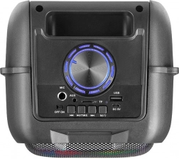 Pentru transport comod nu lipsesc cureaua de umăr și bateria integrată reîncărcată prin USB. Boxa suportă multiple surse de muzică (Bluetooth, FM, intrări MIC/USB/AUX/TF), astfel încât poți reda playlisturi, podcasturi și radio oriunde te-ai afla.