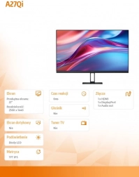 Monitorul 27″ 2K A27Qi aduce un raport excelent între detaliu și suprafață de afișare. Rezoluția 2560 × 1440 (QHD) oferă mai mult spațiu de lucru decât Full HD și, în același timp, păstrează o claritate excelentă a textului și graficii. O alegere ideală pentru birou, home office și multimedia.