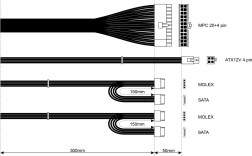 Dotat cu conector P4 4 pini, 2x MOLEX, 2x SATA și conector universal 24 pini.