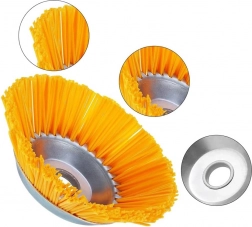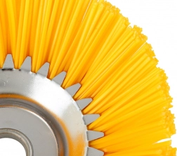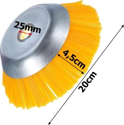 Mențineți aleile, trotuarele și terasele în stare perfectă. Peria din nailon cu diametrul de 200 mm se montează pe majoritatea motocoaselor și, datorită perilor denși și foarte rigizi, curăță eficient rosturile și suprafețele de buruieni, mușchi și impurități. Viteza maximă de 10.000 rpm asigură un progres rapid fără efort inutil.