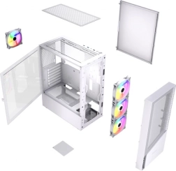Fornax 4300 este o carcasă midi tower albă, concepută pentru gameri și utilizatori exigenți care doresc airflow excelent, iluminare ARGB atractivă și montaj confortabil. Panourile mesh frontale și superioare favorizează un flux intens de aer, în timp ce cele patru ventilatoare ARGB preinstalate mențin componentele la temperaturi optime chiar și în sesiuni lungi de gaming.
