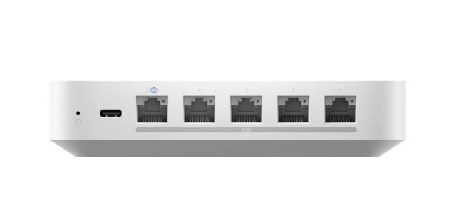 Dispozitivul oferă mai multe porturi Ethernet gigabit pentru conexiuni pe cablu și un conector USB‑C. Ecosistemul UniFi permite implementare, scalare și monitorizare ușoară a întregii infrastructuri – de la WAN până la LAN. Împreună cu firewall avansat și QoS, este proiectat pentru partajare rapidă și sigură a internetului și funcționare fluentă a mai multor servicii.