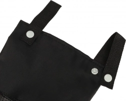 Două bride superioare cu capse și o bandă posterioară cu scai mențin geanta ferm pe poziție, chiar și când mergi pe pavate sau pietriș.
