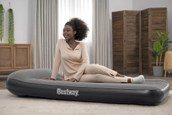Bucurați-vă de un somn liniștit oriunde v-ați afla. Patul gonflabil BESTWAY Tritech combină structura internă robustă I‑Beam cu materialul durabil Tritech, care își păstrează forma chiar și în utilizare îndelungată. Suprafața plăcută din velur previne alunecarea lenjeriei și asigură confort pe tot parcursul nopții.