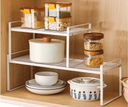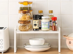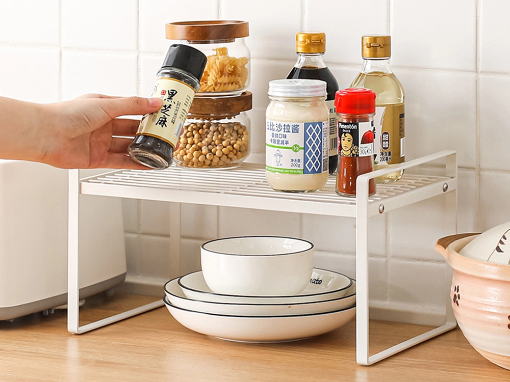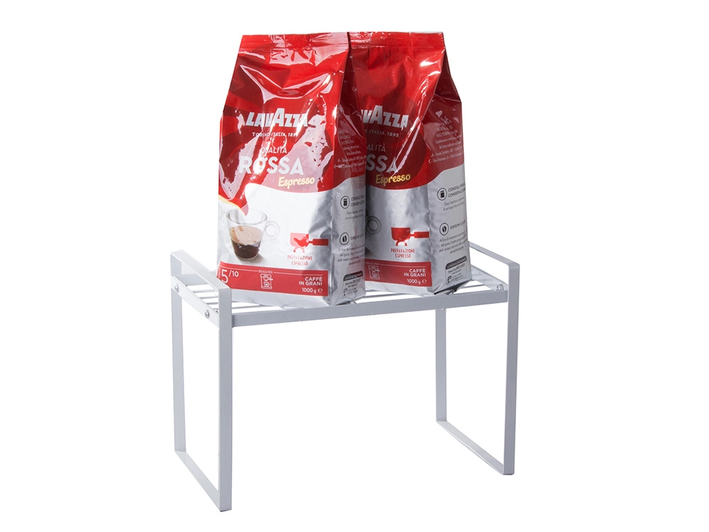 Organizează-ți bucătăria în câteva clipe cu acest organizator metalic stabil. Datorită construcției înălțate creezi un nivel suplimentar de depozitare deasupra blatului, folosești spațiul și sub poliță și păstrezi totul ordonat și la îndemână. Execuția durabilă din metal lăcuit asigură stabilitate și durată lungă de viață în bucătărie, cămară și baie.