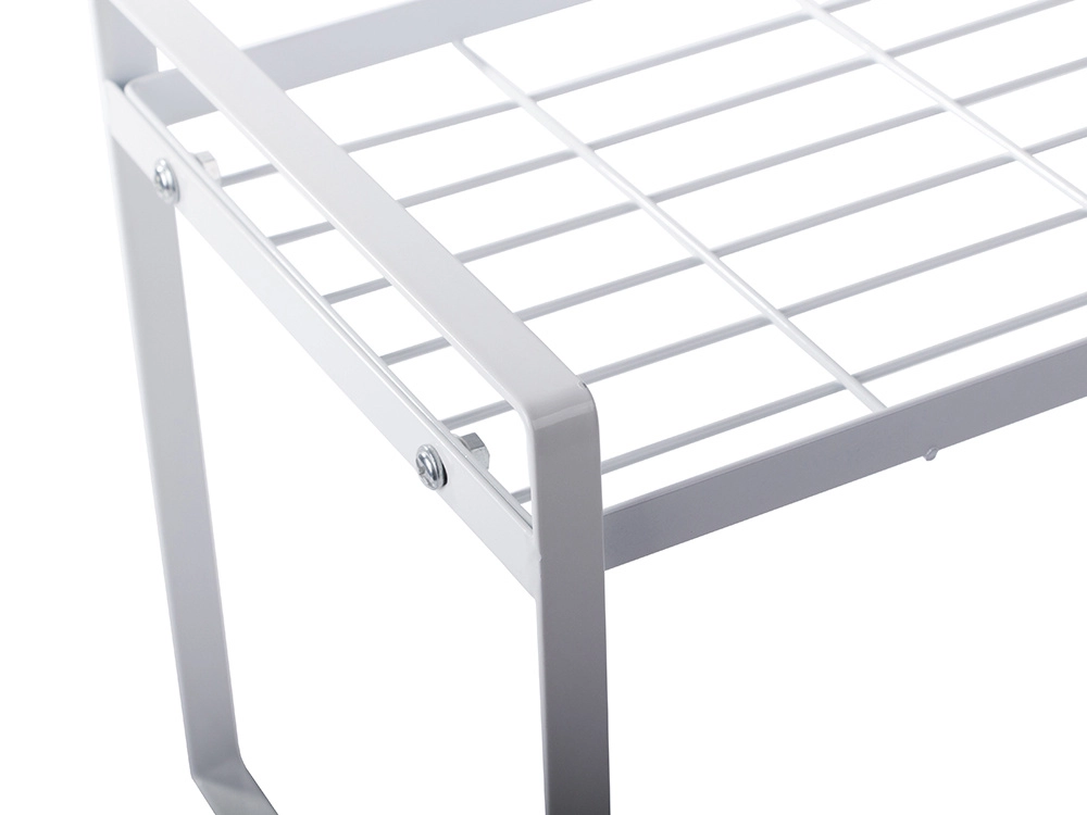 Această etajeră metalică cu un singur nivel este ideală pentru depozitarea ordonată a condimentelor, ceștilor, farfuriilor sau recipientelor. Suprafața deschisă tip grilaj permite circulația aerului și vizibilitate bună asupra conținutului, în timp ce construcția solidă din metal lăcuit oferă capacitate de încărcare fiabilă și întreținere ușoară.