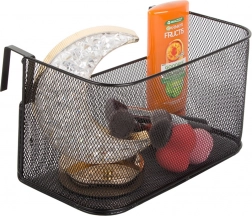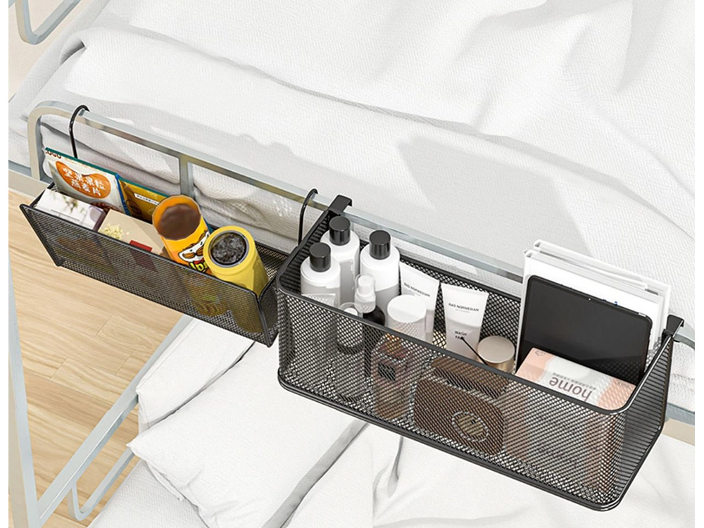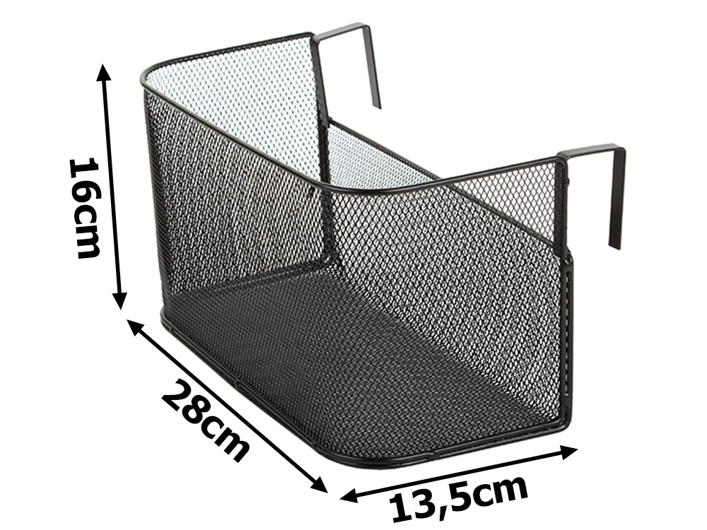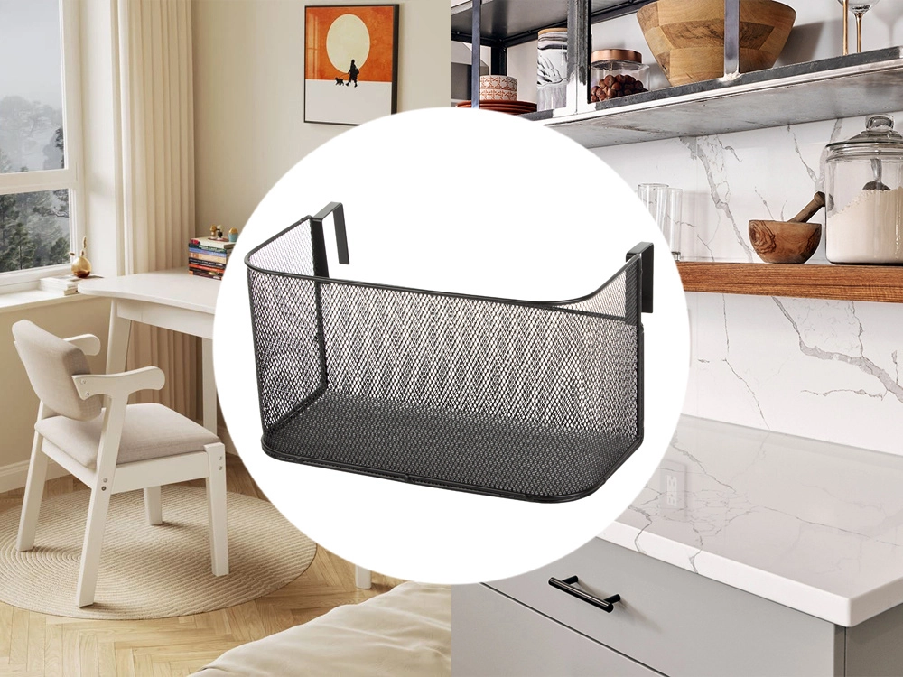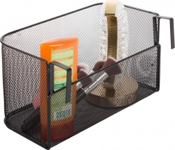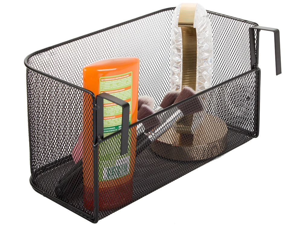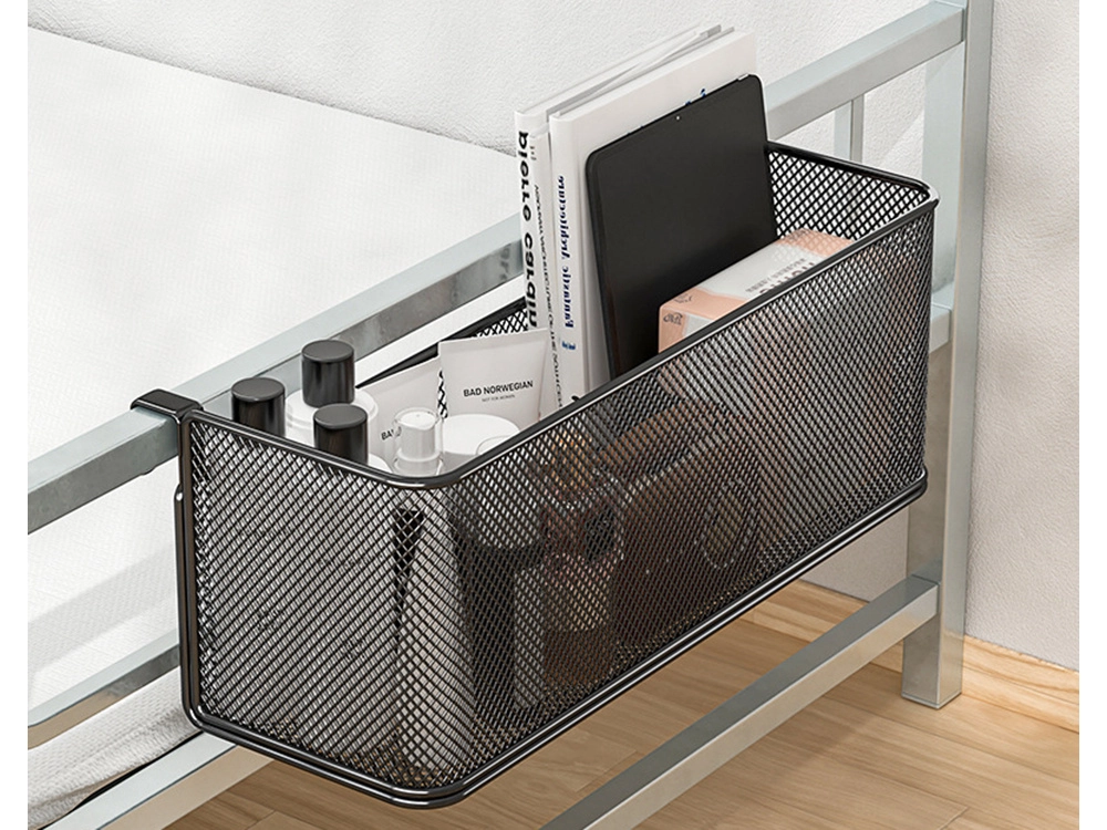 Obțineți mai mult spațiu de depozitare fără găurire. Organizatorul suspendat din plasă metalică vopsită oferă o circulație excelentă a aerului, vizibilitate instantă a conținutului și rezistență ridicată la umiditate. Potrivit pentru condimente, produse cosmetice, detergenți, rechizite de birou, precum și cărți și electronice lângă pat.
