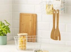 Depozitați fructe, condimente sau alimente uscate la înălțime și eliberați-vă suprafața de lucru. Grila deschisă asigură vizibilitate și circulație a aerului.