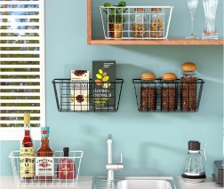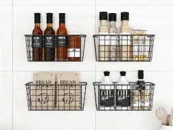 Montajul se face în câteva clipe – este suficient să folosiți 2 cârlige de perete autoadezive, fără găurire și fără unelte. Coșul poate fi folosit și separat ca organizator pentru raft/poliță. Aspectul minimalist se potrivește cu interioare moderne și clasice.