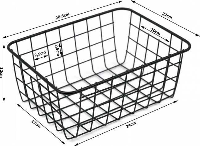 Acest coș spațios din sârmă, din metal vopsit, este ideal pentru organizarea de zi cu zi – de la alimente și condimente până la produse de toaletă sau mărunțișuri de birou. Designul minimalist, în culoare neagră, se potrivește atât interioarelor moderne, cât și celor industriale.