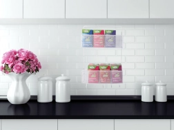Montajul se face rapid – fără găurire, cu ajutorul suporturilor adezive robuste. Structura din plasă (mesh) favorizează circulația aerului, reducând umiditatea și depunerile de apă, și permite o vedere rapidă a obiectelor depozitate.