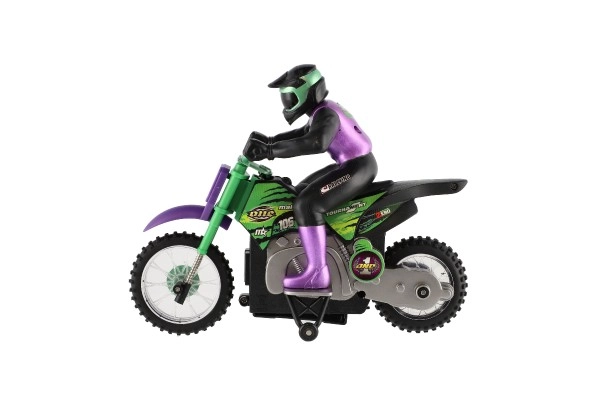 Această motocicletă cu telecomandă este creată pentru rulare dinamică și primele încercări de trucuri. Suspensia roților din față îmbunătățește stabilitatea pe diverse suprafețe și asigură trecerea mai lină peste denivelări. Tehnologia wireless de 2,4 GHz permite rularea simultană cu mai mulți piloți fără interferențe ale semnalului.