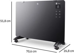 Elegantul încălzitor electric cu panou ELDOM, cu sticlă securizată, îmbină încălzirea convectivă și radiantă pentru căldură rapidă și economică în încăperi de până la 20 m². Oferă telecomandă, aplicație prin Wi‑Fi, panou tactil, 2 trepte de putere (1300–1500 W), funcționare silențioasă și dotări bogate, inclusiv temporizator săptămânal și funcția Detectare fereastră deschisă.