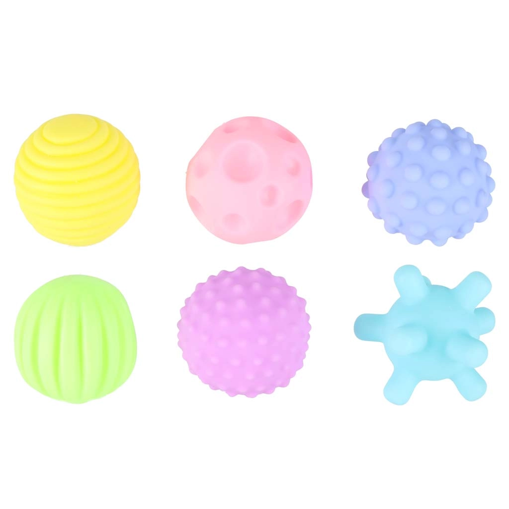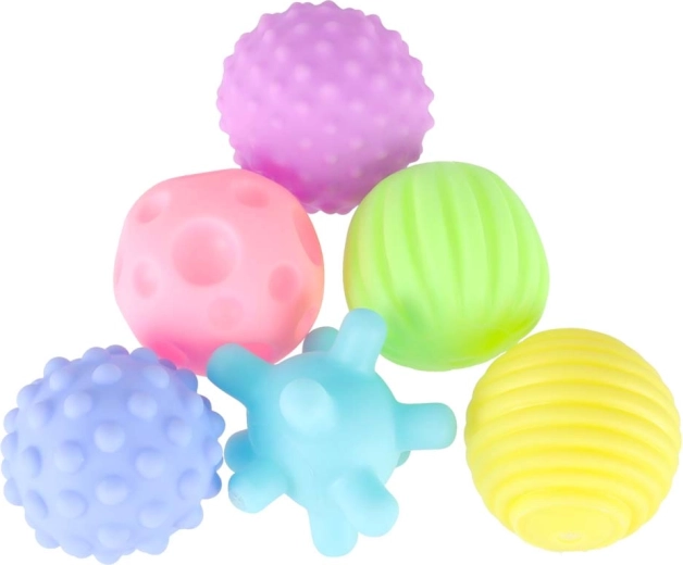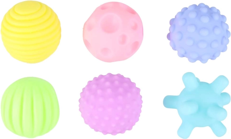 Acest set de 6 mingi senzoriale a fost creat pentru joacă sigură și stimulativă pentru copiii de la 6 luni. Texturile variate (proeminențe, striații, adâncituri) invită la explorare, întăresc prinderea și îmbunătățesc coordonarea mână–ochi. Fiecare mingiuță scoate un sunet la strângere, oferind un stimul senzorial suplimentar și motivând la joacă repetată.
