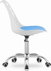 Acest scaun de birou combină aspectul modern cu practicitatea. Combinația de alb și albastru înviorează orice interior.