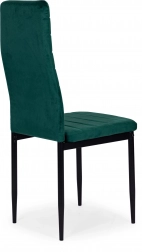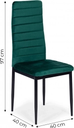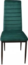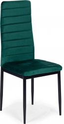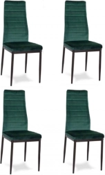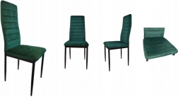 Acest set de patru scaune de masă este alegerea ideală pentru sufrageria sau livingul tău. Te va impresiona cu designul modern și tapițeria de catifea verde plăcută la atingere. Datorită spătarului profilat înalt și umpluturii de spumă de înaltă calitate, scaunele oferă confort maxim. Picioarele metalice negre conferă scaunelor un aspect elegant și garantează stabilitate.