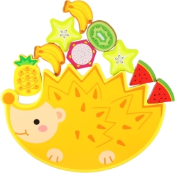 Acest joc Montessori de echilibru distrează copiii ore în șir și, în același timp, îi învață. Copiii pot înșira fructele pe șnur sau le pot echilibra pe arici astfel încât turnul de fructe să nu se prăbușească. Zarul cu culori/imagini adaugă jocului un element de surpriză și provocări amuzante.