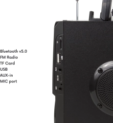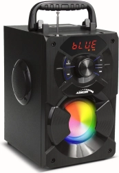 Ideală pentru transport și utilizare oriunde – Mânerul practic pentru transport facil și dimensiunile compacte fac boxa potrivită atât pentru interior, cât și pentru exterior. Boxa este alimentată de baterii cu capacitate de 2000 mAh, oferind 3-4 ore de utilizare, cu posibilitatea de încărcare ușoară prin cablu USB (5V, 1A).