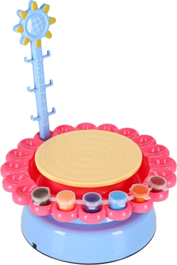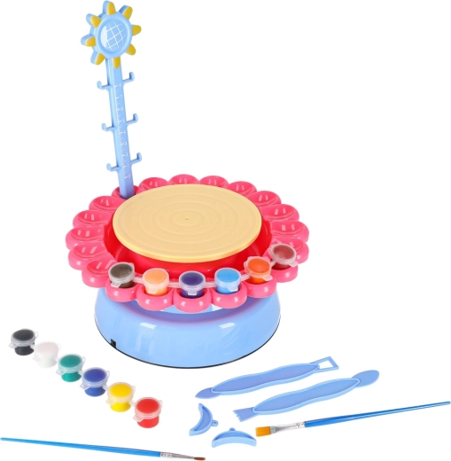 - Set complet: roată, lut, culori, pensule, unelte, cablu USB și șorț