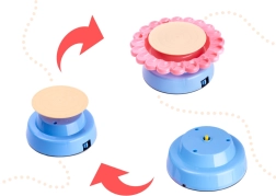 Setul conține o roată de olărit atrăgătoare vizual, care este destinată modelării lutului și decorării.