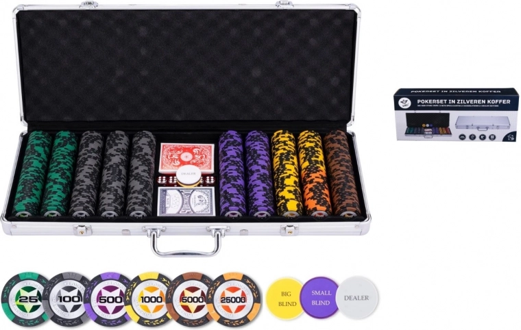 Set de poker exclusivist destinat jucătorilor care apreciază calitatea înaltă și execuția profesională. Conține toate elementele necesare pentru un joc palpitant și este stilistic încorporat într-o valiză elegantă argintie cu cheie.