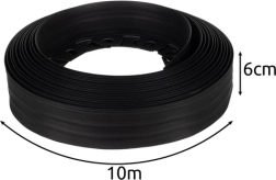Produsul este conceput pentru a se potrivi oricărei grădini datorită posibilității de ajustare facilă a lungimii. Înălțimea de 6 cm împiedică eficient extinderea ierbii și a rădăcinilor, menținând grădina ordonată și plăcută. Datorită finisajului negru elegant, bordura se armonizează estetic cu plantarea din jur.