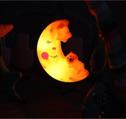 - Lună cu un comutator care activează o lumină delicată ce își schimbă culoarea.