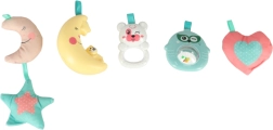 - Jucării Moi și Zornăitoare: Include jucării moi și zornăitoare din plastic în culori luminoase și atractive pentru a stimula copilul la joacă. Ajută, de asemenea, la dezvoltarea simțurilor și abilităților motorii ale copilului.