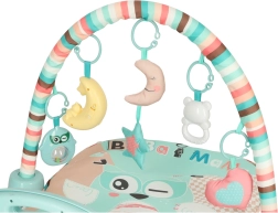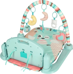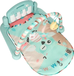 - Stând pe spate, copilul se poate juca cu jucăriile suspendate și cu picioarele, cântând la pian.