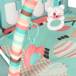 - Pian cu Trei Moduri de Redare: Mata este echipată cu un pian care poate fi detașat cu ușurință pentru a deveni o jucărie separată. Pianul oferă trei moduri de redare: sunete de gamă, melodie creată de tânărul artist, 5 melodii amuzante și 5 cântece de leagăn liniștitoare.