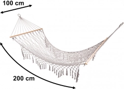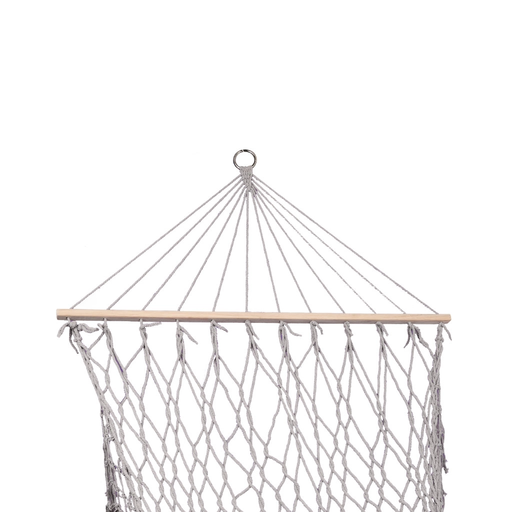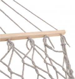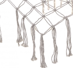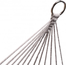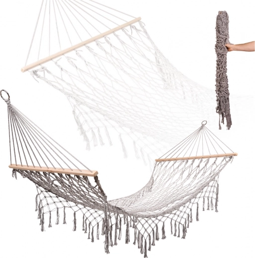 Fabricat din fibre de bumbac de înaltă calitate (65%), care asigură o rezistență ridicată și o capacitate de încărcare de până la 250 kg. Datorită franjurilor elegante și culorii gri, se integrează perfect în orice mediu de grădină.