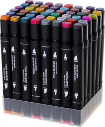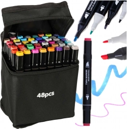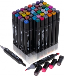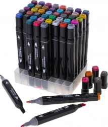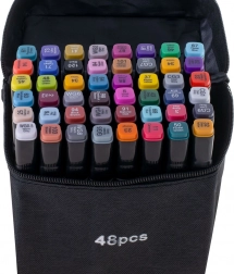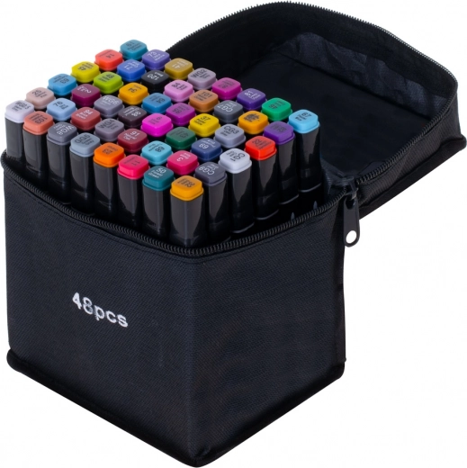 Descoperă bucuria culorilor cu setul universal de 48 de markere alcoolice. Două vârfuri pe fiecare marker – lat, teșit pentru colorarea suprafețelor mai mari și fin pentru linii detaliate – îți oferă libertatea de a crea ilustrații, schițe, benzi desenate și lettering.