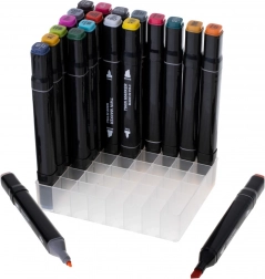 Suportul din plastic cu compartimente păstrează toate markerele la îndemână și în ordine în timpul lucrului și după.