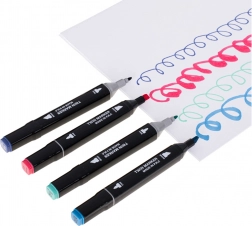 Fiecare marker are un vârf lat și unul fin, astfel încât colorezi ușor suprafețe mari și trasezi în același timp linii precise.