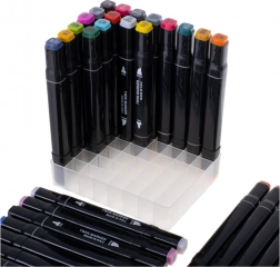 Cerneala alcoolică se usucă rapid, se amestecă ușor și permite blenduire lină fără urme. Datorită husei textile portabile și suportului cu compartimente vei avea culorile mereu la îndemână – acasă, la școală și în călătorii.
