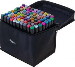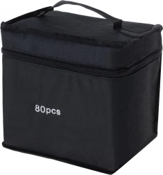 Suportul din plastic păstrează marker-ele organizate, iar husa textilă cu fermoar le protejează și facilitează transportul.