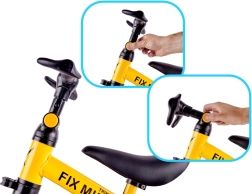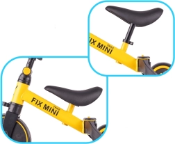 Trike Fix Mini crește odată cu copilul: în câteva clipe îl transformați din vehicul de împins cu trei roți în tricicletă cu pedale, apoi în mod de antrenament cu ecartament posterior îngustat pentru exersarea echilibrului. Ghidonul (41–50 cm) și șaua (31–38 cm) reglabile asigură o ergonomie corectă pentru micii rideri de la 18 luni la 4 ani.