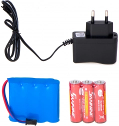 Sunt incluse acumulatorul de 4,8 V 700 mAh, încărcătorul de rețea și bateriile pentru telecomandă (3× AA). Doar despachetezi și pornești.