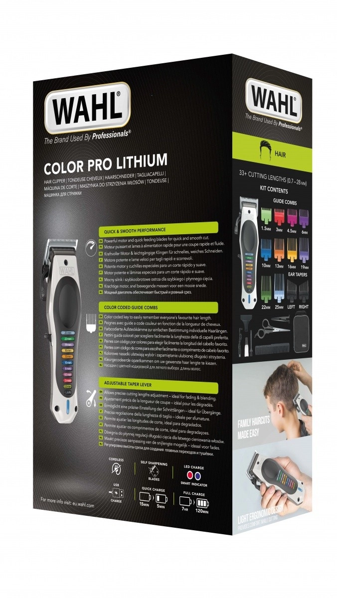 Mașina de tuns părul Color Pro Lithium oferă un motor puternic și lame cu rotație rapidă, care asigură tăieri rapide și netede. Nu trebuie să mai pierdeți timp pentru a vă aranja părul.