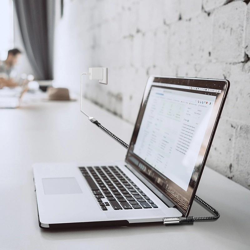 - Conector USB-C în unghi: Conectorul la un unghi de 90° facilitează utilizarea în spații restrânse și protejează dispozitivele împotriva conectării și deconectării repetate.
