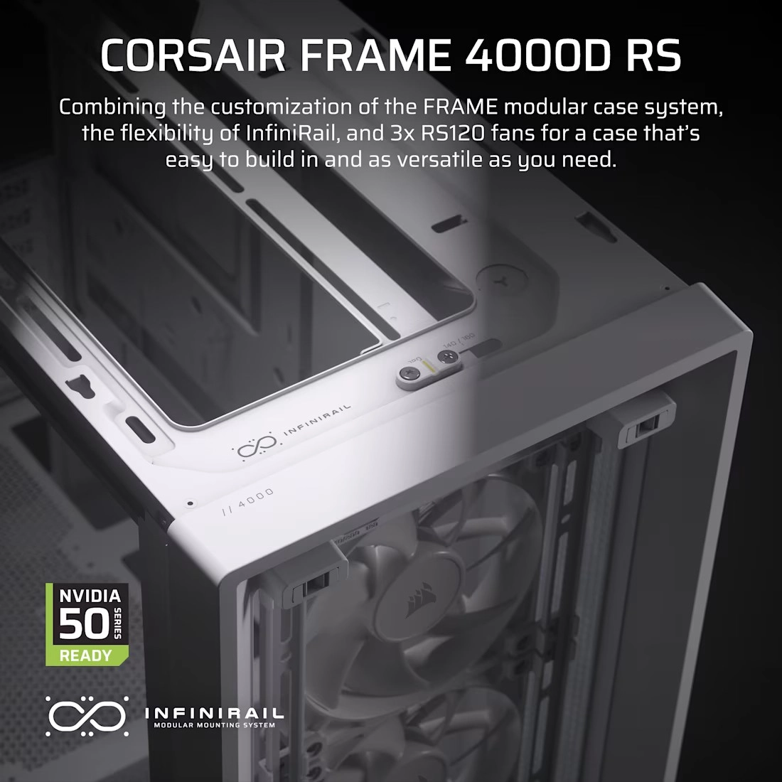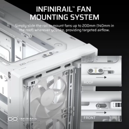 Această carcasă aduce o construcție complet modulară care face și mai ușoară personalizarea calculatorului în funcție de nevoile tale. Datorită sistemului de montare a ventilatoarelor InfiniRail construcția și întreținerea carcasei sunt simple și eficiente.