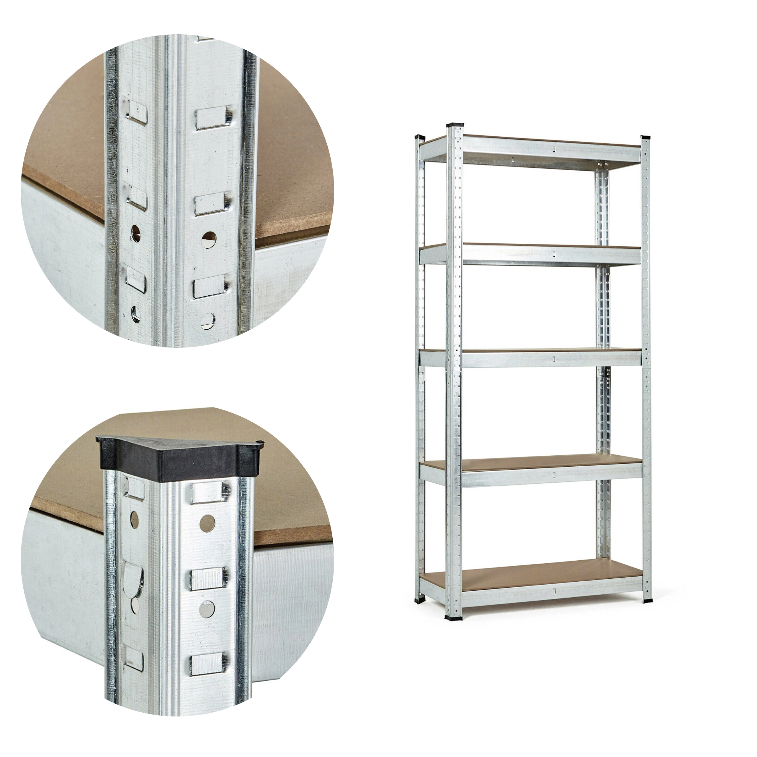 Structura din oțel galvanizat protejează raftul de umiditate și coroziune, făcându-l ideal pentru utilizare în medii cu umiditate ridicată. Sistemul de asamblare bazat pe inserția "dintre" în orificii asigură montaj simplu și stabilitate ridicată chiar și la încărcări mari. Picioarele de protecție previn deteriorarea podelei.
