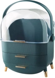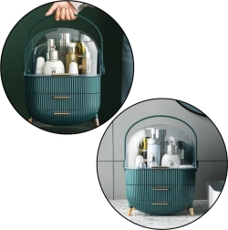 Mențineți ordinea și stilul! Acest organizator verde pentru produse cosmetice cu capac transparent este ideal pentru oricine apreciază estetica și funcționalitatea în îngrijirea și machiajul zilnic. Cu o construcție spațioasă, cu dimensiuni de 37 x 25 x 18,5 cm, cu ușurință găzduiește o gamă largă de produse, fie că este vorba de pensule, farduri, rujuri, parfumuri, creme sau produse de îngrijire a pielii.
