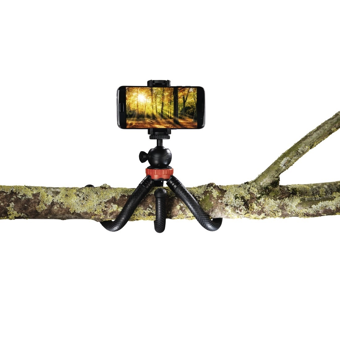 Picioarele elastice ale trepiedului pot fi îndoite până la 360°, asigurând o fixare stabilă pe orice suprafață.