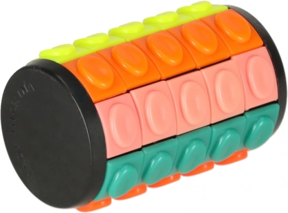 Cilindrul rotativ cu cinci inele este un joc logic captivant pentru copii și adulți. Principiul este simplu: în fiecare rând există un spațiu liber care permite deplasarea și rotația pieselor colorate pentru a le aranja în ordinea corectă. Pare ușor la prima vedere, dar oferă distracție pentru ore întregi!