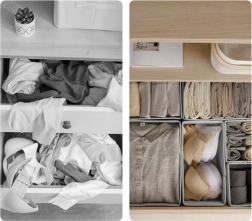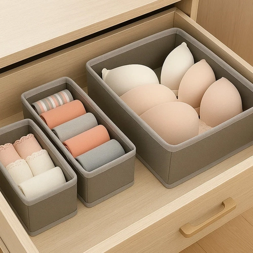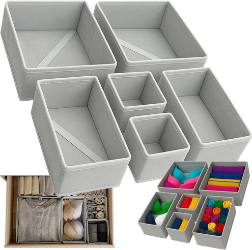 Păstrează-ți întotdeauna lenjeria și accesoriile la locul lor cu acest set practic de organizatoare. Conține 6 bucăți de diverse dimensiuni, care asigură utilizare universală și curățare ușoară. Designul stilat, gri deschis, adaugă eleganță și se potrivește ușor în orice dulap. Fiecare organizator este proiectat să fie stabil și durabil.