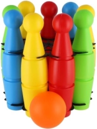 Descoperiți bucuria bowlingului cu setul colorat DOHÁNY, ideal pentru primele experiențe sportive ale copiilor. Construcția ușoară, formele rotunjite și culorile vii invită la joacă și susțin coordonarea mână–ochi și postura corectă a corpului.