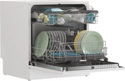 Mașina de spălat vase compactă este soluția ideală pentru spații mici. Datorită dimensiunii sale economice, oferă performanță ridicată în curățarea vaselor tale.