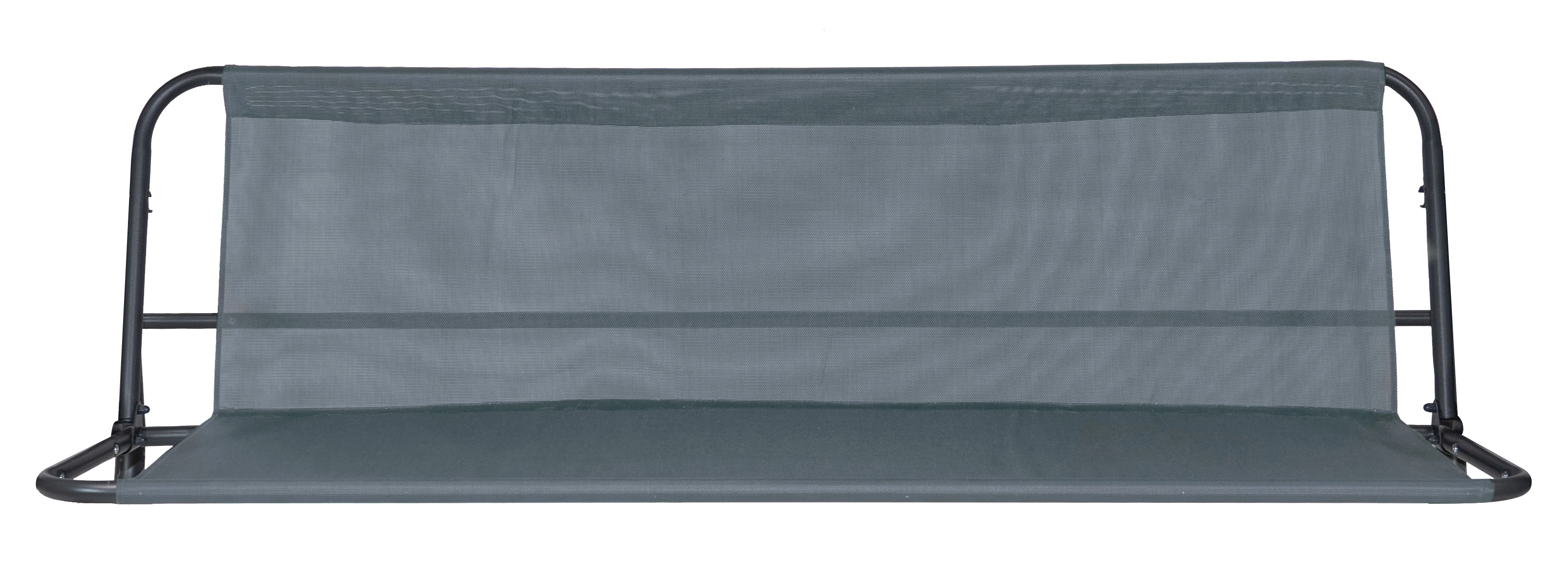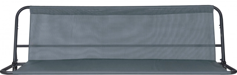 Scaunul împletit gri este fabricat din țesătură plastică de tip 2x1, care își păstrează aspectul uniform și rezistă condițiilor meteorologice.
